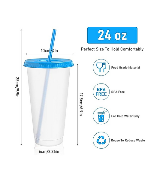 24 oz - Gobelet en plastique givré avec couvercle et paille colorés - 700 ml